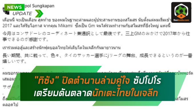 การจากลาของทิซังในครั้งนี้ไม่เพียงเป็นการปิดฉากการทำงานในฐานะล่ามที่ คอนซาโดเล่ ซัปโปโร แต่ยังเป็นจุดเริ่มต้นของบทบาทใหม่ที่ใหญ่กว่าเดิมในการพัฒนาวงการฟุตบอลไทยในเวทีระดับโลก