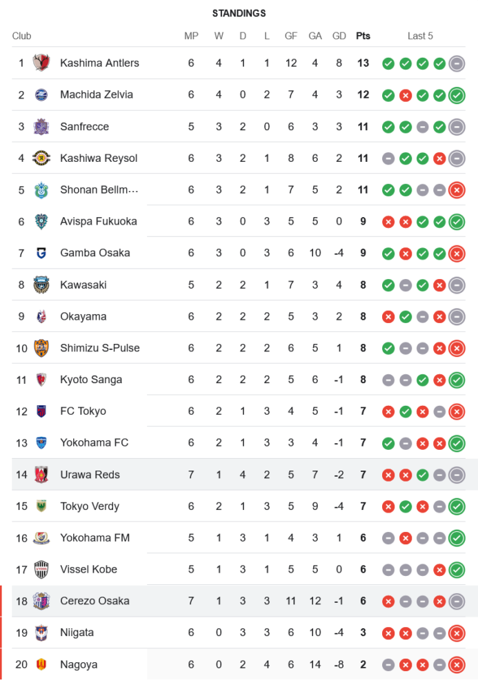 การเสมอครั้งนี้ทำให้ เซเรโซ โอซาก้า ยังคงอยู่ในโซนท้ายตารางที่ อันดับ 18 ของ เจลีก ดิวิชัน 1 โดยมีเพียง 6 คะแนน จาก 7 นัด ขณะที่ อูราวะ เรด ไดมอนส์ อยู่อันดับที่ 14 ด้วยคะแนน 7 แต้ม จาก 7 นัด ซึ่งยังต้องปรับปรุงผลงานหากต้องการไต่อันดับขึ้นไป