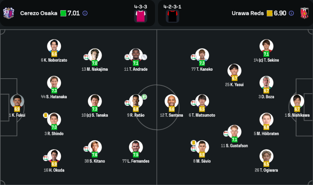ตัวสำรองที่ลงสนาม: มัตสึโอะ (7.5), วาตานาเบะ (7.6), ฮารากุจิ (7.0)