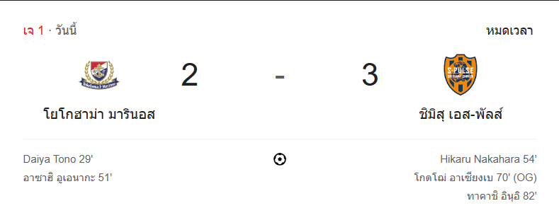 แม้จะออกนำก่อนถึงสองลูก แต่เกมนี้มารินอสโดนบทเรียนชิ้นใหญ่จากการขาดความนิ่งในครึ่งหลัง ขณะที่ ชิมิสุ เอส-พัลส์ โชว์สปิริตสุดยอด พลิกกลับมาชนะแบบสุดมันส์ด้วยประตูจากฟรีคิก, OG และลูกยิงสุดคมจาก Takashi Inui เรียกได้ว่าเป็นหนึ่งในเกมที่เดือดที่สุดของฤดูกาลใน ผลบอลสด เจลีกวันนี้