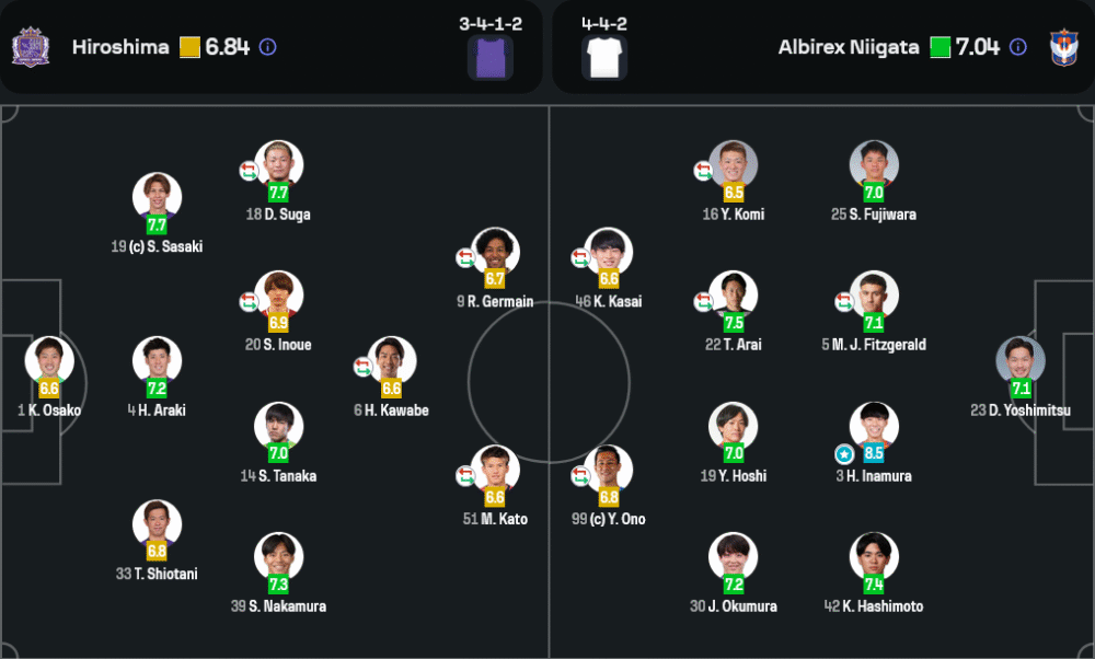 - ฮิโรชิม่า: ซาสากิ (7.7), ซูงะ (7.7), นากามูระ (7.3)