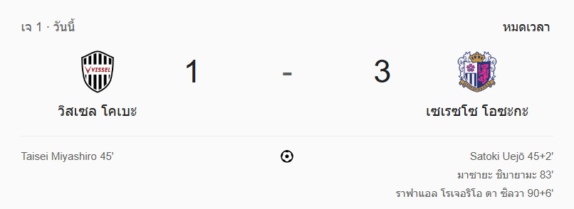 เซเรโซ โอซาก้า โชว์ท้ายเกมบุกสังหาร วิสเซล โกเบ 3-1 คาบ้าน! ราฟาเอล ปิดกล่องทดเจ็บ