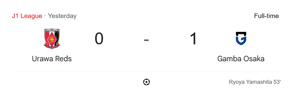 บ้านผลบอล สรุปหลังเกม ยามาชิตะฮีโร่! กัมบะ โอซาก้า บุกล้ม อูราวะ เรด ไดมอนส์ 1-0 คารัง ขยับขึ้นท็อปไฟว์เจลีก!