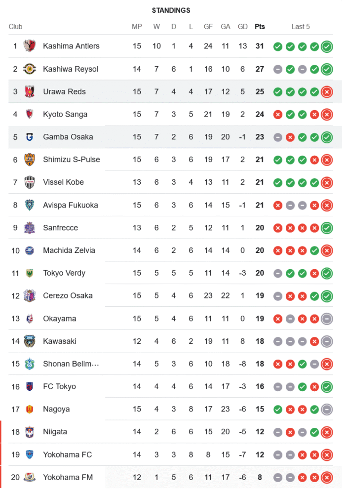 ชัยชนะในเกมนี้ส่งผลให้ กัมบะ โอซาก้า ขยับขึ้นรั้งอันดับ 5 ของตาราง มี 23 แต้มจาก 15 นัด ตามหลังจ่าฝูงอย่างคาชิม่าเพียง 8 คะแนน ขณะที่ อูราวะ เรด ไดมอนส์ ยังคงรั้งอันดับ 3 มี 25 แต้มเท่าเดิม พลาดโอกาสทำแต้มไล่จ่าฝูงและขยับขึ้นอันดับ 2 อย่างน่าเสียดาย