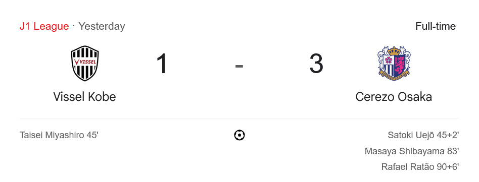 จาก : ผลบอลสด เจลีก ดิวิชัน 1 2025 ระหว่าง วิสเซล โกเบ 1-3 เซเรโซ โอซาก้า วันนี้ 6/5/68 – บ้านกีฬา