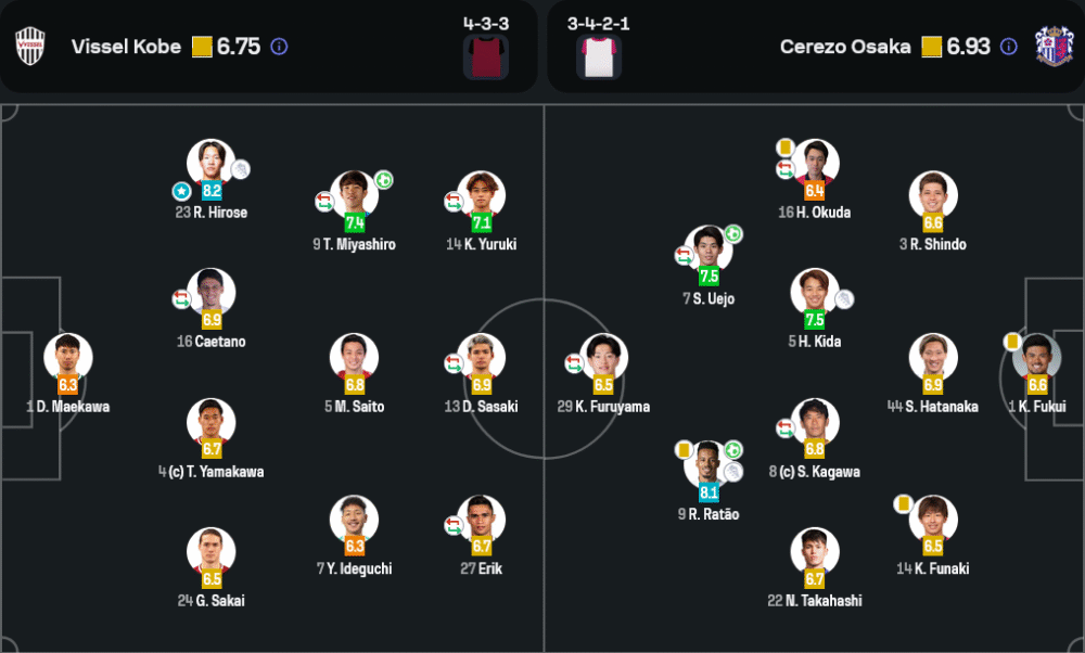 ริคุโตะ ฮิโรเสะ จากฝั่งวิสเซล โกเบ แม้ทีมจะแพ้แต่เขาคือแสงสว่างของแนวรุก สร้างโอกาสสำคัญ และแอสซิสต์ประตูได้ มีเรตติ้งสูงสุดที่ 8.2 ด้วยการเลี้ยงบอล เติมเกมรุก และวางบอลอย่างแม่นยำ