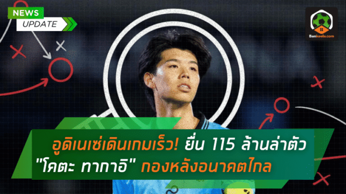 ตลาดซื้อขายนักเตะกำลังเริ่มระอุ และหนึ่งในดีลที่น่าจับตามองที่สุดจากฝั่งเอเชียคือชื่อของ โคตะ ทากาอิ กองหลังดาวรุ่งดีกรีทีมชาติญี่ปุ่น วัยเพียง 20 ปี ที่กำลังถูกล่าตัวโดยหลายสโมสรชั้นนำในยุโรป ล่าสุด อูดิเนเซ่ ทีมแกร่งจาก กัลโช่ เซเรีย อา อิตาลี เปิดฉากยื่นข้อเสนอจำนวน 3.5 ล้านดอลลาร์สหรัฐฯ หรือราว 115 ล้านบาท หวังคว้าลายเซ็นเจ้าหนูรายนี้ก่อนใคร