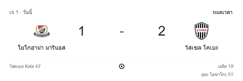 - จบเกม: วิสเซล โกเบ บุกเฉือนโยโกฮาม่า มารินอส 2-1! เก็บ 3 แต้มสุดสำคัญ