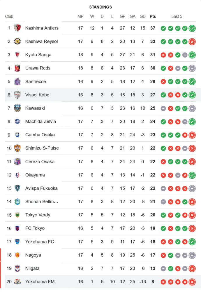 หลังคว้า 3 แต้มจากนัดนี้ วิสเซล โกเบ ขยับขึ้นมาอยู่อันดับ 6 ของตารางเจลีก มี 27 คะแนนจาก 16 นัด ไล่จี้กลุ่มหัวตารางอย่าง ซานเฟรชเช และ อูราวะ แบบหายใจรดต้นคอ ด้าน โยโกฮาม่า เอฟ มารินอส ฟอร์มยังไม่กระเตื้อง แพ้ติดต่อกันหลายเกมจนจมอยู่บ๊วยของตาราง มีเพียง 8 คะแนนจาก 16 นัด และต้องเร่งเครื่องเต็มที่หากไม่อยากตกชั้นในฤดูกาลนี้