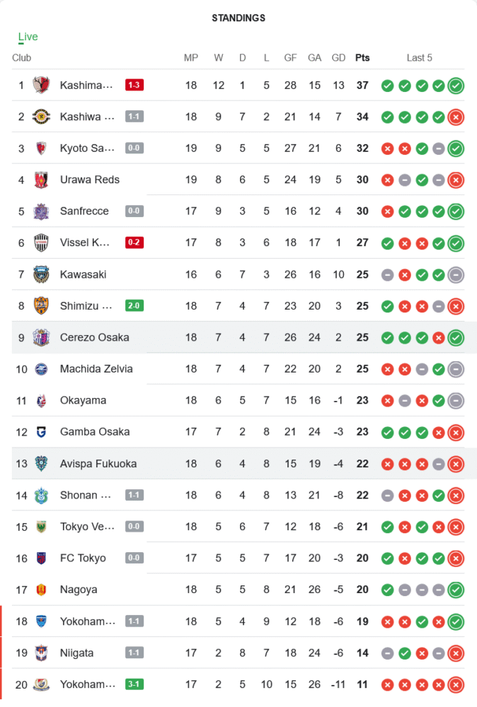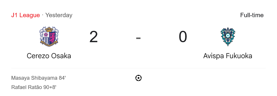 หลังเกมนี้ เซเรโซ โอซาก้า ขยับขึ้นมารั้งอันดับ 9 ของตารางเจลีก มี 25 คะแนนจาก 18 นัด เท่ากับอันดับ 7 ถึงอันดับ 10 ทำให้โอกาสลุ้นพื้นที่โควต้าระดับท็อป 5 ยังเปิดกว้าง ด้าน อวิสปา ฟูกูโอกะ ยังย่ำอยู่ที่อันดับ 13 ด้วย 22 คะแนน โดยฟอร์มการเล่นไม่สม่ำเสมอ 5 นัดหลังแพ้ถึง 4 เกม