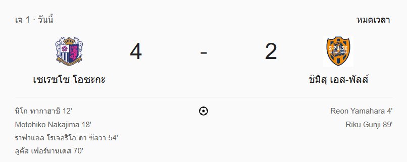 • จบครึ่งแรก: เซเรโซ โอซากะ นำ ชิมิสุ เอส-พัลส์ 2-1