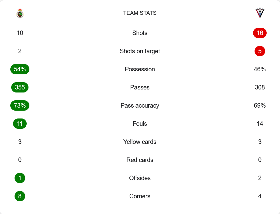 แม้ ราซิ่ง จะเป็นฝ่ายครองบอลมากกว่าที่ 54% และจ่ายบอลแม่นยำกว่า (73%) แต่โอกาสยิงที่เข้ากรอบมีเพียง 2 ครั้งจาก 10 หน ตรงข้ามกับ มิรานเดส ที่มีโอกาสยิงมากถึง 16 ครั้ง และเข้ากรอบถึง 5 ครั้ง เกมนี้เต็มไปด้วยจังหวะปะทะและแท็กติกที่ดุเดือด ทั้งสองทีมรวมกันทำฟาวล์ 25 ครั้ง และโดนใบเหลืองฝั่งละ 3 ใบ แสดงให้เห็นถึงความมุ่งมั่นทั้งสองฝั่งในเกมสำคัญระดับตัดเชือก
