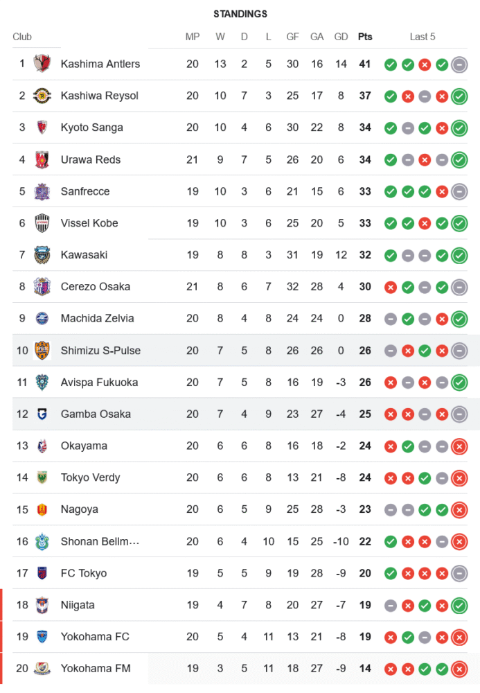 หลังจากจบเกมนี้ ชิมิสุ เอส-พัลส์ เก็บเพิ่มเป็น 26 แต้มจาก 20 นัด ขยับขึ้นอันดับ 10 ยังเกาะกลุ่มกลางตารางได้อย่างมั่นคง ส่วน กัมบะ โอซาก้า มี 25 แต้มจาก 20 นัด อยู่อันดับ 12 แบบเบียดกันสุด ๆ ทำให้การแข่งขันระหว่างอันดับ 7-13 ยังคงเปิดกว้างแบบเดือดต่อเนื่อง