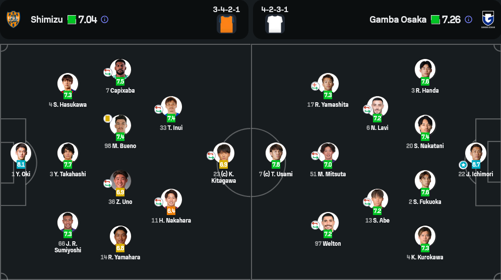 🔁 81′ คันตะ จิบะ ลงแทน อินุอิ (ชิมิสุ) / คุราตะ แทน ลาวี (กัมบะ)