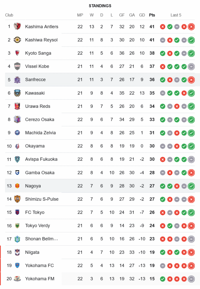 ความพ่ายแพ้ในเกมนี้ทำให้ฮิโรชิม่ายังรั้งอันดับ 5 ของตารางมี 36 แต้มจาก 21 นัด โดน วิสเซล โกเบ แซงขึ้นอันดับ 4 และมีแต้มเท่ากับ คาวาซากิ ฟรอนตาเล่ ที่กำลังจี้มาติดๆ ส่วนทางฝั่งนาโกย่าขยับขึ้นมามี 27 แต้ม ขยับจากอันดับ 14 ขึ้นมาอันดับ 13 เท่ากับ ชิมิสุ แต่ประตูได้เสียยังไม่ดีนัก ต้องเร่งเครื่องต่อเพื่อหนีพื้นที่ท้ายตาราง