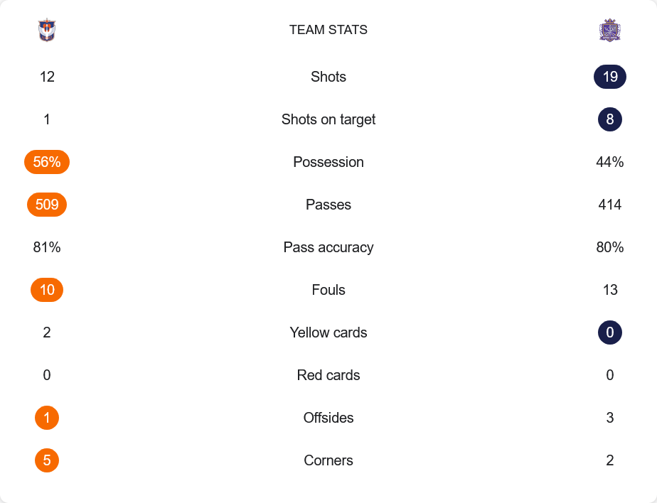 เกมนี้แผนการเล่นของนิงาตะเป็น 4-2-3-1 พยายามครองบอลและคุมเกมกลางสนาม แต่ขาดความเฉียบคมในพื้นที่สุดท้าย สร้างโอกาสยิงได้เพียงครั้งเดียวที่เข้ากรอบ ขณะที่แผน 3-4-2-1 ของฮิโรชิม่ามีจุดเด่นเรื่องการแพ็กเกมรับแน่นและเล่นโต้กลับเร็วได้ดี วิเคราะห์บอล แล้วเห็นชัดว่านิงาตะครองบอล 56% แต่ไร้ประสิทธิภาพ ส่วนฮิโรชิม่าทำได้ดีกว่าในเรื่องการเปลี่ยนจังหวะและการเข้าทำที่แม่นยำกว่าเยอะ