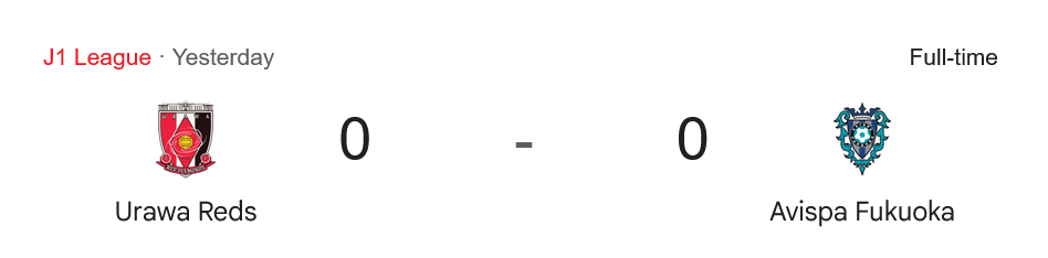 แม้จะได้เล่นในบ้านและครองบอลมากกว่า แต่ อูราวะ เรด ไดมอนส์ กลับไม่สามารถเจาะแนวรับอันแข็งแกร่งของ อวิสปา ฟูกูโอกะ ได้ จบเกมแบบไร้สกอร์ 0-0 ในศึก เจลีก ดิวิชัน 1 เมื่อค่ำคืนที่ผ่านมา ผลเสมอนี้ส่งผลให้ทั้งสองทีมยังคงวนเวียนอยู่กลางตาราง โดยแฟนบอลที่ติดตาม ผลบอลสด ต้องลุ้นกันจนถึงนาทีสุดท้ายแต่ไร้ประตูให้เฮกัน