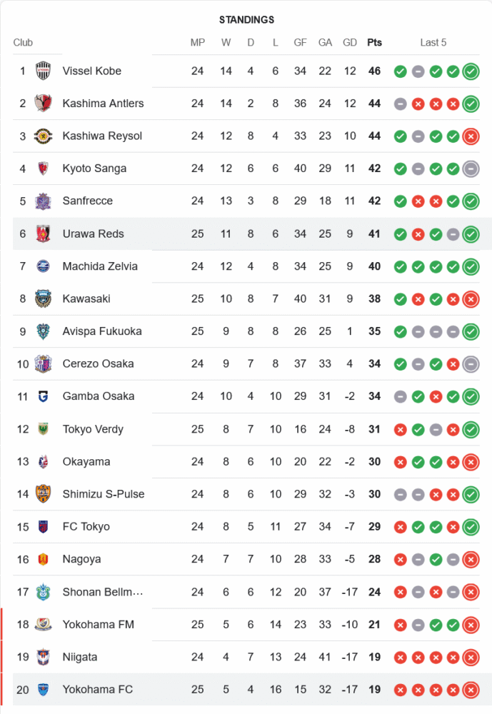 ชัยชนะนัดนี้ส่งอูราวะ เรด ไดมอนส์ ขึ้นมาอันดับ 6 มี 41 แต้ม ไล่จี้โซนหัวตารางเหลือเพียง 5 แต้ม ส่วนโยโกฮามา เอฟซี ยังคงจมบ๊วยอันดับ 20 มีเพียง 19 แต้ม โอกาสรอดตกชั้นยากขึ้นเรื่อยๆ ต้องเร่งเก็บแต้มทุกนัดที่เหลือ