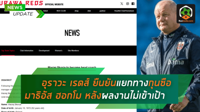 ทีม อุราวะ เรดส์ สโมสรยักษ์ใหญ่แห่งเจลีกที่เป็นต้นสังกัดของนักเตะไทยอย่าง บุ๊ค-เอกนิษฐ์ ปัญญา ได้ประกาศข่าวใหญ่ในการเปลี่ยนแปลงตัวกุนซือเมื่อไม่นานมานี้ หลังจากที่ทีมกำลังประสบปัญหาฟอร์มการเล่นไม่เข้าที่ ไม่ตามเป้าหมายที่ตั้งไว้ จนปัจจุบันรั้งอยู่ในอันดับที่ 13 ของตารางคะแนน โดยมีเพียง 35 คะแนนจากการลงเล่น 26 นัด ซึ่งทำให้ทีมตัดสินใจแยกทางกับ มาธิอัส ฮอกโม กุนซือชาวนอร์เวย์ที่รับหน้าที่คุมทีมมาในฤดูกาลนี้