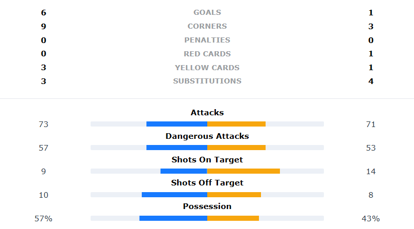 จากสถิติการแข่งขัน โยโกฮาม่า เอฟ มารินอส ครองบอลได้ 57% โดยมีโอกาสยิงทั้งหมด 73 ครั้ง และยิงตรงกรอบถึง 9 ครั้ง ทำให้เห็นถึงความดุดันในการรุก ขณะที่ คอนซาโดล ซัปโปโร มีโอกาสยิง 71 ครั้ง แต่ตรงกรอบเพียง 9 ครั้ง ทั้งสองทีมเล่นได้เต็มที่แต่ชัดเจนว่าทีมเยือนประสบปัญหาหนักในการป้องกัน
