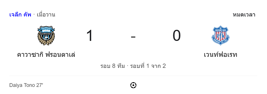 สถิติเจลีก คัพ 2024 ระหว่าง คาวาซากิ ฟรอนตาเล่ 1-0 เวนท์ฟอเรท โกฟุ