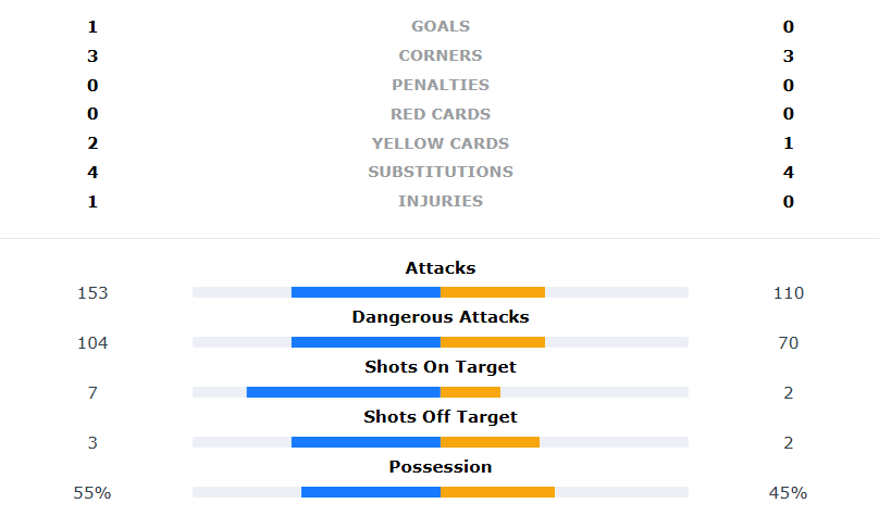 • นาทีที่ 63: เวนท์ฟอเรท โกฟุ ได้ลูกเตะมุมครั้งที่สี่ของเกม