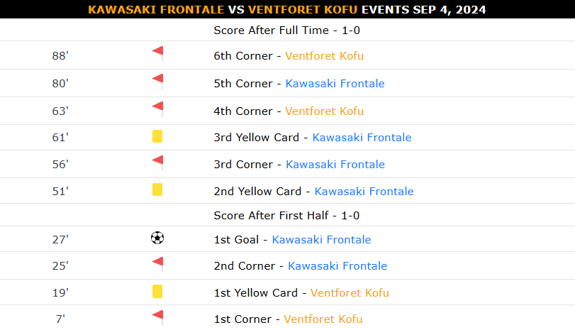 เหตุการณ์สำคัญในเกม คาวาซากิ ฟรอนตาเล่ 1-0 เวนท์ฟอเรท โกฟุ