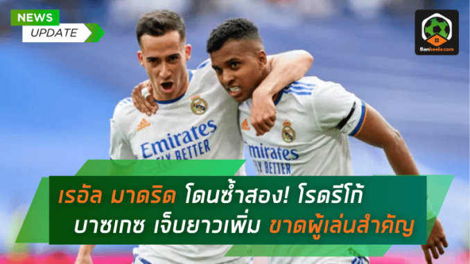 ข่าวร้ายถาโถม เรอัล มาดริด อีกครั้ง เมื่อมีรายงานล่าสุดว่า โรดรีโก้ และ ลูกัส บาซเกซ สองกำลังสำคัญของทีมจำเป็นต้องพักฟื้นจากอาการบาดเจ็บเพิ่มเติมเป็นระยะเวลานานถึงเดือน ส่งผลให้ คาร์โล อันเชลอตติ ต้องเผชิญกับปัญหานักเตะหลักขาดหายไปอีกครั้ง ก่อนที่พวกเขาจะพบกับศึกหนัก ยูฟ่า แชมเปี้ยนส์ ลีก กับ ลิเวอร์พูล ในอีกเพียงสองสัปดาห์ข้างหน้า
