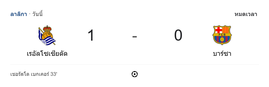 ในศึก ลาลีกา 2024 นัดล่าสุดระหว่าง เรอัล โซเซียดาด และ บาร์เซโลน่า ผลจบลงด้วยการที่เจ้าบ้านสามารถเอาชนะไปได้ 1-0 จากประตูชัยของ เชอรัลโด้ เบคเกอร์ ในนาทีที่ 33 เกมนี้เต็มไปด้วยความเข้มข้นและดราม่า บ้านกีฬา พร้อมรายงานผลบอลสดและทุกช่วงเวลาสำคัญในเกมนี้