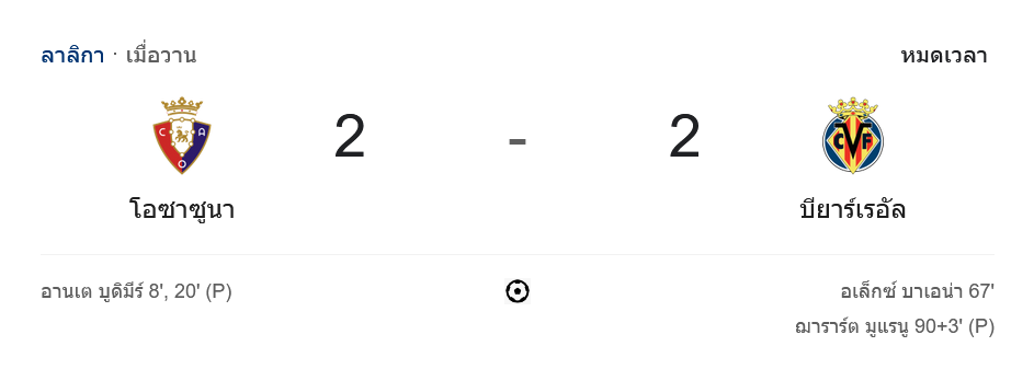 จาก : ผลบอลสด ลาลิกา 2024 ระหว่าง โอซาซูน่า 2-2 บียาร์เรอัล วันนี้ 24/11/67 – บ้านกีฬา
