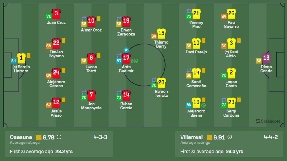 อันเต บูดิเมียร์ จากโอซาซูน่า ได้คะแนนสูงถึง 8.7 ด้วยการยิงสองประตูจากจุดโทษและสร้างความแตกต่างในเกมรุกให้กับทีม