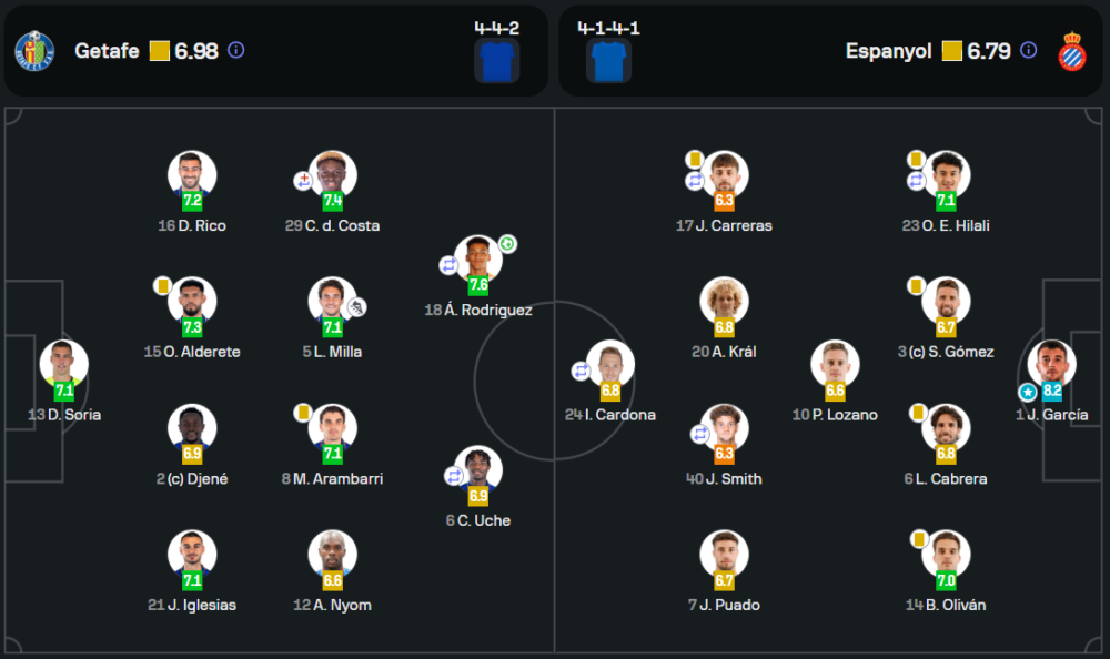 โจน การ์เซีย ผู้รักษาประตูของเอสปันญ่อล เซฟสำคัญหลายครั้งและได้รับคะแนนสูงสุด 8.2 แม้ทีมจะแพ้ แต่เขาเป็นหัวใจสำคัญที่ทำให้ทีมยังมีโอกาสต่อสู้ในเกมนี้