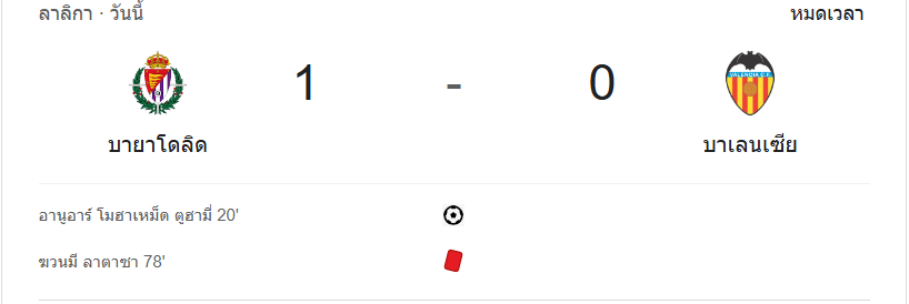 จบเกม: เรอัล บายาโดลิดเอาชนะบาเลนเซียไปได้ 1-0