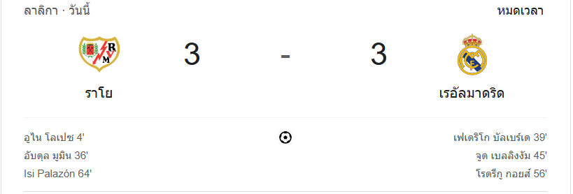จบการแข่งขัน: ราโย่ บาเยกาโน่ เสมอกับ เรอัล มาดริด 3-3 ในเกมที่เต็มไปด้วยความมันส์และเหตุการณ์พลิกผันตลอดทั้งเกม