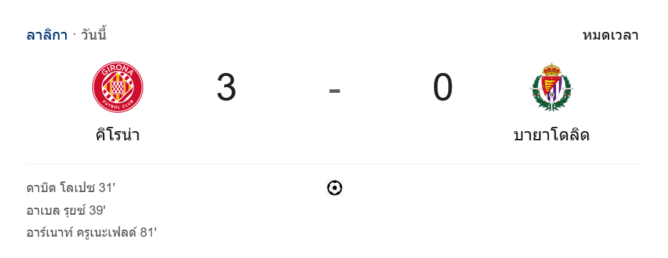 จาก : ผลบอลสด ลาลิกา 2024 ระหว่าง คิโรน่า 3-0 เรอัล บายาโดลิด วันนี้ 21/12/67 – บ้านกีฬา