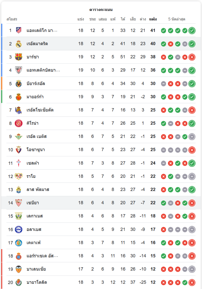 เรอัล มาดริดขยับขึ้นมาเป็นอันดับ 2 ของตาราง มี 40 คะแนน ไล่จี้แอตเลติโก มาดริดที่นำอยู่เพียง 1 คะแนน สร้างความกดดันในการลุ้นแชมป์ ส่วนเซบีย่าตกไปอยู่อันดับ 14 ยังคงต้องดิ้นรนเพื่อหนีโซนตกชั้น