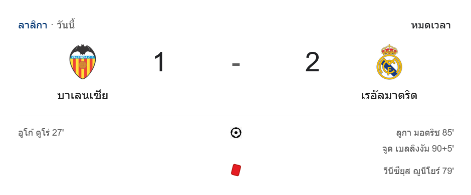 • 🔴 79′ วินิซิอุส ถูกใบแดงไล่ออกจากสนาม
