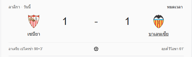 นาทีที่ 97: จบเกม เซบีย่า 1-1 บาเลนเซีย