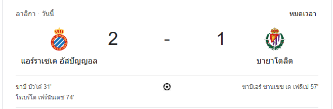ผลบอลสด ลาลิกา 2024 ระหว่าง ทีม เอสปันญ่อล vs เรอัล บายาโดลิด วันนี้ 18/1/68 ดูบอลย้อนหลัง คลิปไฮไลท์ ดูบอลลาลิกา 2024