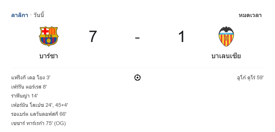 จาก : ผลบอลสด ลาลิกา 2024 ระหว่าง บาร์เซโลน่า 7-1 บาเลนเซีย วันนี้ 27/1/68 – บ้านกีฬา
