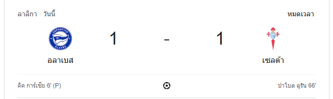 นาทีที่ 95: กรรมการเป่านกหวีดจบเกม อลาเบสและเซลต้า บีโก้เสมอกัน 1-1 ในเกมที่เต็มไปด้วยความดุเดือดและจังหวะการตัดสินสำคัญจาก VAR