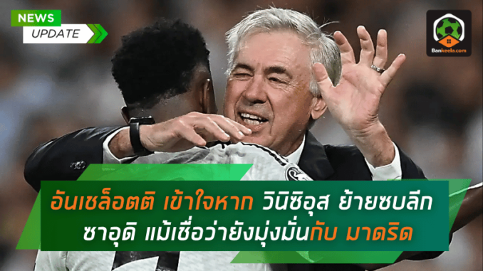 คาร์โล อันเชล็อตติ ยอดกุนซือของ เรอัล มาดริด ออกมาเปิดใจแบบตรงไปตรงมาเกี่ยวกับกระแสข่าวที่ว่า วินิซิอุส จูเนียร์ อาจย้ายไปค้าแข้งใน ซาอุดิ โปรลีก โดยระบุว่า แม้จะเข้าใจหากแข้งทีมชาติบราซิลตัดสินใจเดินหน้ารับข้อเสนอมหาศาล แต่เชื่อว่าแนวรุกตัวเก่งยังต้องการสร้างประวัติศาสตร์กับทัพ ราชันชุดขาว ต่อไป