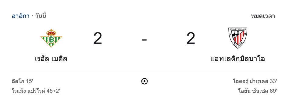 จาก : ผลบอลสด ลาลิกา 2024 ระหว่าง เรอัล เบติส 2-2 แอธเลติก บิลเบา วันนี้ 3/2/68 – บ้านกีฬา