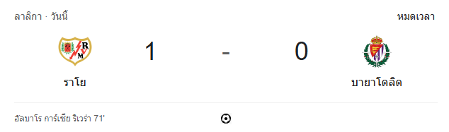 - นาทีที่ 95 กรรมการเป่านกหวีดจบเกม ราโย บาเยกาโน่เอาชนะเรอัล บายาโดลิด 1-0