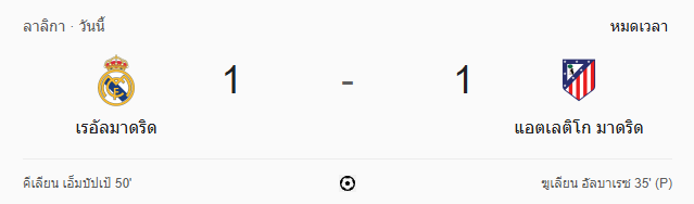 - นาทีที่ 94 กรรมการเป่านกหวีดจบเกม เรอัล มาดริดเสมอแอตเลติโก มาดริด 1-1