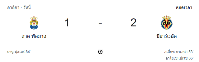 - นาทีที่ 101 กรรมการเป่านกหวีดจบเกม ลาส พัลมาสแพ้บียาร์เรอัล 1-2