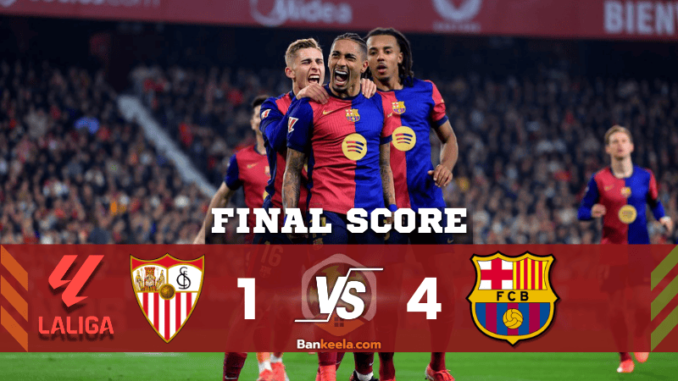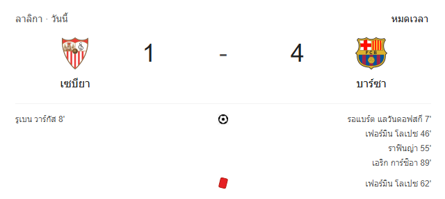 แม้ว่า เซบีย่า จะเริ่มต้นได้ดีและยิงนำก่อนในช่วงต้นเกม แต่สุดท้ายพวกเขาไม่อาจต้านทานเกมรุกของ บาร์เซโลน่า ได้ โดยเฉพาะในครึ่งหลังที่โดนรัว 3 ประตูติดต่อกัน แถมยังต้องเล่น 10 คนหลังจาก แฟร์มิน โลเปซ โดนใบแดงไล่ออก เกมนี้แสดงให้เห็นว่าบาร์ซ่าพร้อมท้าชิงแชมป์ลาลิกาแบบเต็มตัว!
