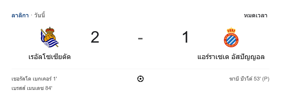 จาก : ผลบอลสด ลาลิกา 2024 ระหว่าง เรอัล โซเซียดาด 2-1 เอสปันญ่อล วันนี้ 10/2/68 – บ้านกีฬา