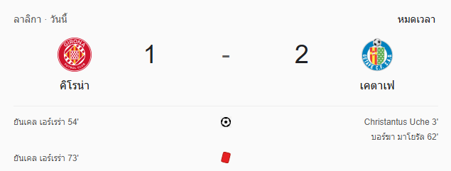 - นาทีที่ 47 กรรมการเป่านกหวีดจบครึ่งแรก กิโรน่า 0-1 เกตาเฟ่