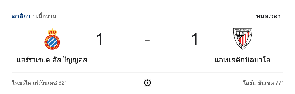 จาก : ผลบอลสด ลาลิกา 2024 ระหว่าง เอสปันญ่อล 1-1 แอธเลติก บิลเบา วันนี้ 16/2/68 – บ้านกีฬา